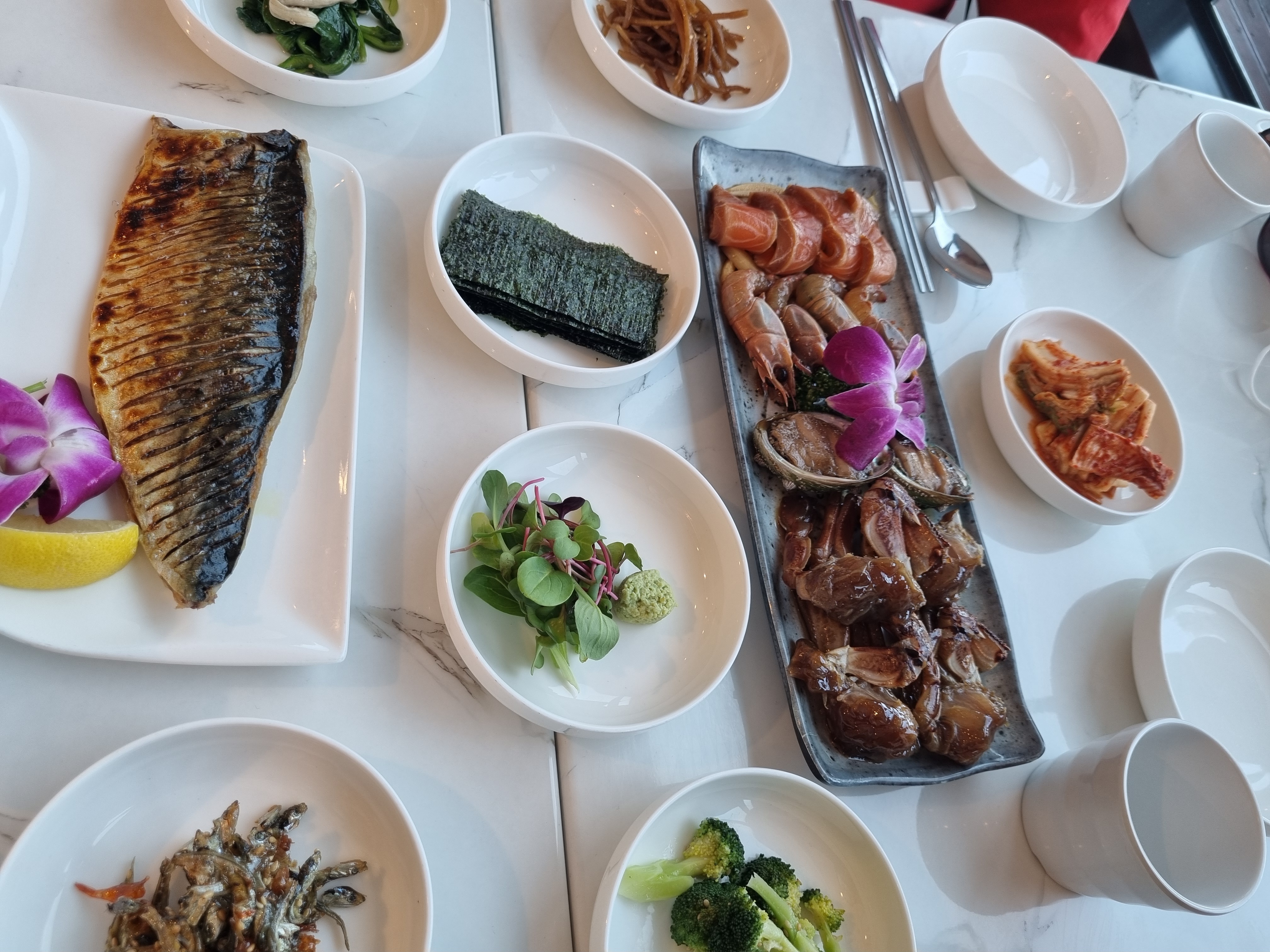 갈치구이, 갈치찜, 고등어구이, 고등어찜, 생선구이, 회, 전복죽, 조개죽, 돈까스, 짬뽕, 자장면, 탕슉, 삼겹살, 라면, 김밥, 떡볶이