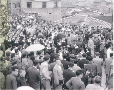 2.28당시 경북고생들과 대구고생들이 경찰에 검거되어 끌려가고 있는 모습