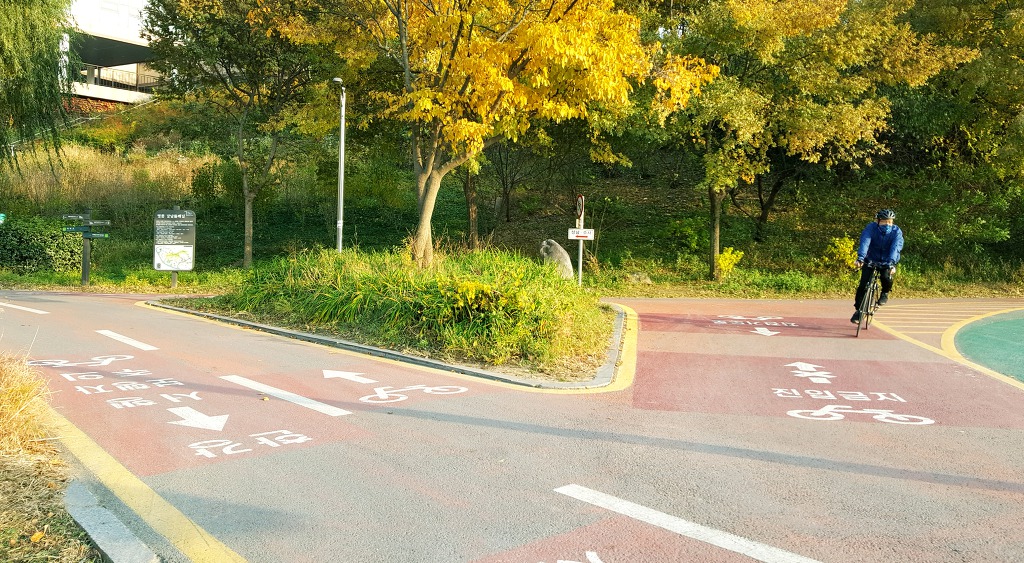 출발하여 양재천으로 진입, 학여울역 380m 안내 표시를 통과하여 더 나가니 위