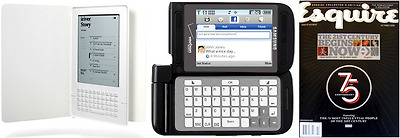 2008년에는 패션전문지 에스콰이어가 전자잉크를 북미 한정판 커버에 사용했다. 에스콰이어 25주년 기념으로 발매된 이 한정판에는