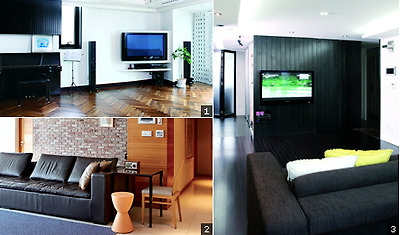 가벽에 홈을 파서 AV 기기들을 달고 보기 좋게 정돈했다. 베란다를 등지게 소파를 놓아 넉넉한 TV 시청 거리를 확보했다.