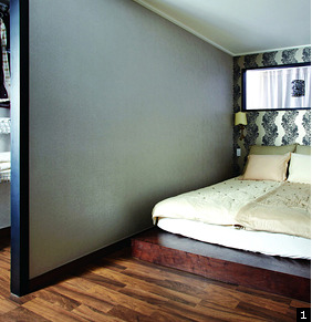 3. 침대 헤드 뒤 수납공간 침실이 좁을 경우 침대 옆으로 붙박이장을 설치하는 것이 일반적이나 이 집은 침대 헤드에 가벽을 세우고 그 뒤를 수납공간으로 활