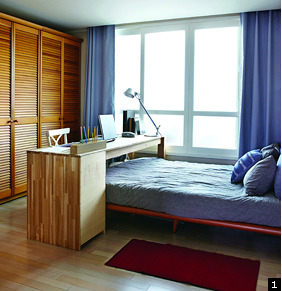 1. 침대 발치에 책상을 끼우다 시판 제품보다 좁고 길게 제작한 책상은, 아이들에게 방을 내주느라 서재 공간이 사라지는 바람에 이리저리 이사를 다녔다. 처음