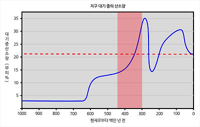 부근의 대기 중 산소가 차지하는 부피가 21%인 것과 비교하면 절반에도 못 미치는 수준이지만 산소가 거의 없었던 지구에는 큰
