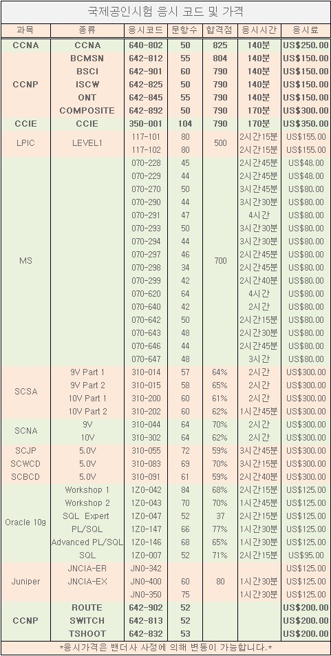 시스코 시험응시 : 프로메트릭 시험센터 & VUE 시험센터 응시 가능 [CCNA, CCNP, CCIE 필기시험]