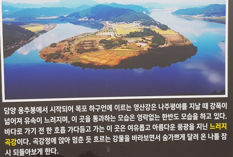 생각으로 동강교로 간다. 동강교에서 영산강 좌안을 따라 간다. 느러지 전망대로 간다. 약한 보슬비가 내린다. 사진만 찍고 간다.