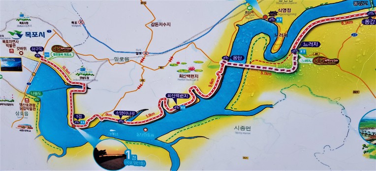 영산강제1경 데크를 지나 목포 하당 지구로 들어 간다. 모텔로 들어 간다.