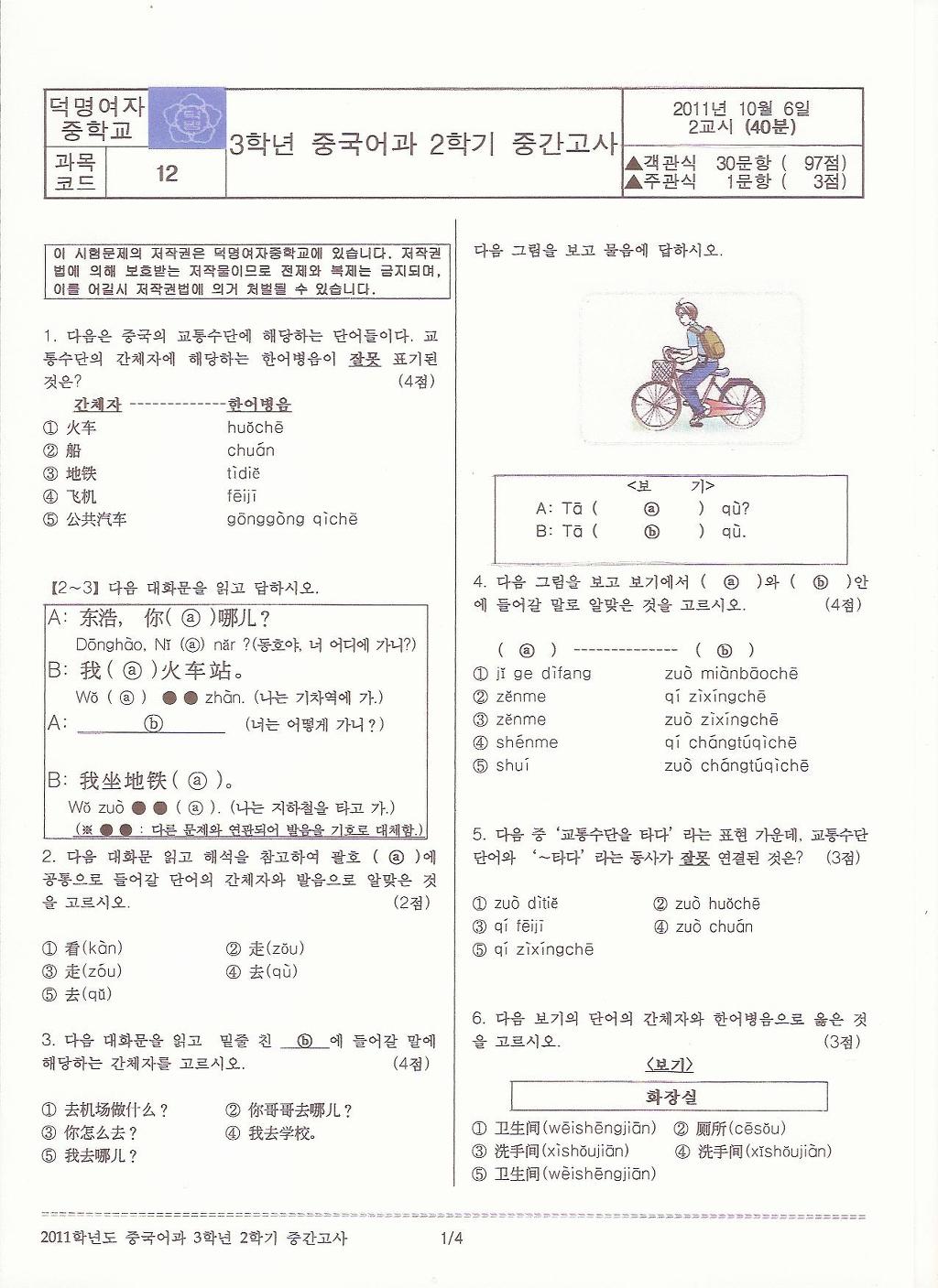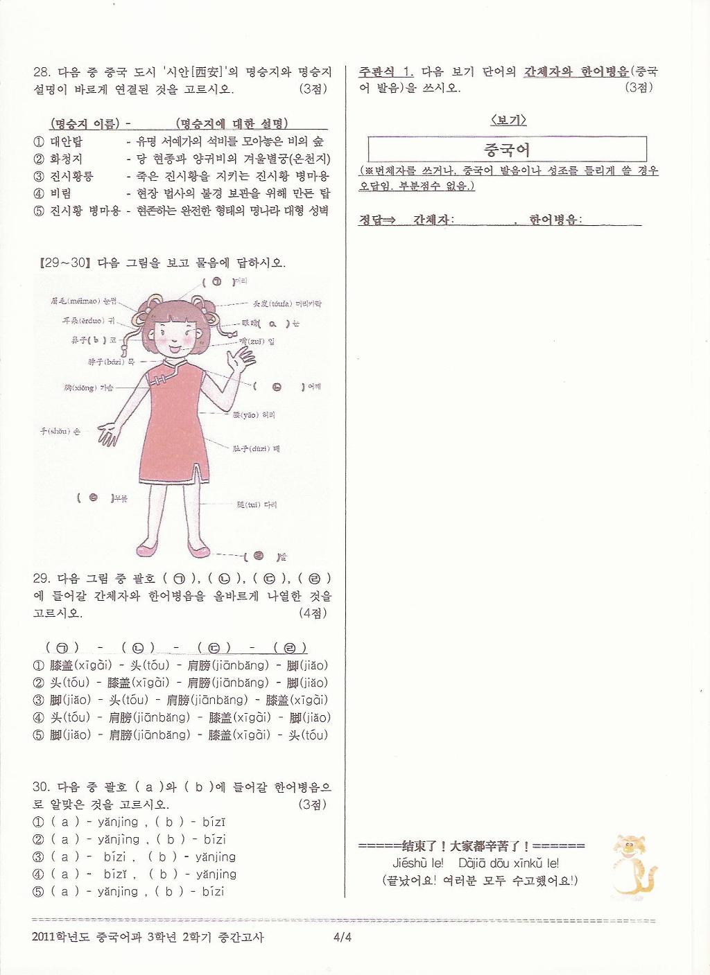 (본 페이지에 댓글 단 학생에게 가산점 쏩니다!!! 단, 28일 중국어 시험 종료 후에는 댓글 올려도 해당 안됩니다~! ^^;; )