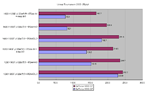 | 【그래프 1】3DMark2001 SE | 【그래프 2】Unreal Tournament 2003 Flyby |