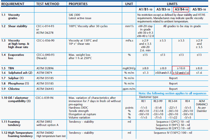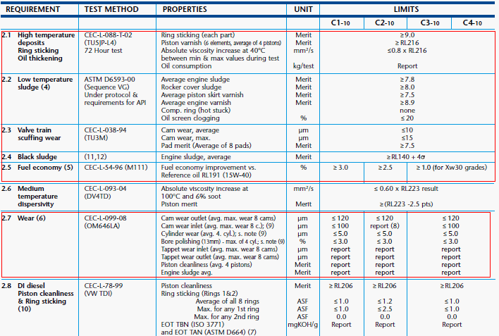 엔진테스트 규격(슬러지 형성 및 마모시험)은 B4규격이나 C3규격은 거의 동일하며, 오히려 연비개선효과