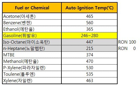 즉, 연료의 자연발화온도를 높일수 있게 화학물질의 조성을 조정하면 옥탄가는 올라갈수 있다고