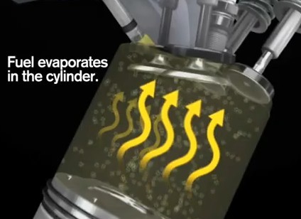 같은 연료를 사용해도 GDI가 압축비를 올릴수있는 것은 연소실내에서 직접분사하는 연료가 증발하면서 주위의