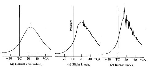 엔진노킹현상이 발생하면 아래와 같이 연소실내의 최대 압력은 증가하여 각종 베어링부의 손상을 야기할수도
