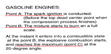 가솔린엔진의 점화시기는 상사점 전에서 점화가 되는데 이러한 이유는 점화플러그 에서 발생한 스파크가