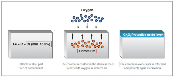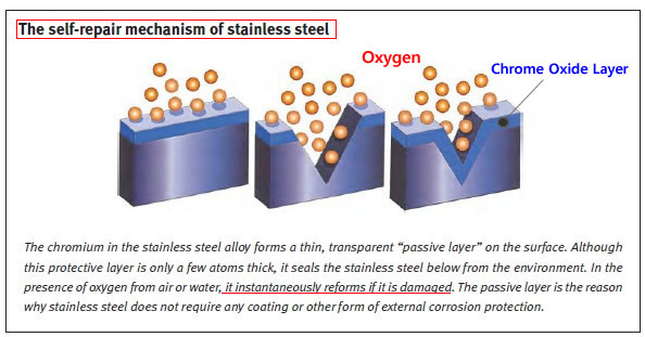 가더라도 스테인레스강에 함유되어 있는 크롬(Cr)이 다시 부식방지층을 형성하여 주게 됩니다.