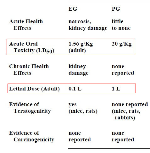 EG, PG모두 독성을 가지고 있으나 PG가 EG보다는 독성이 약합니다.
