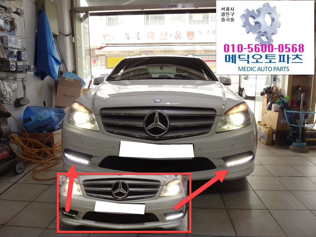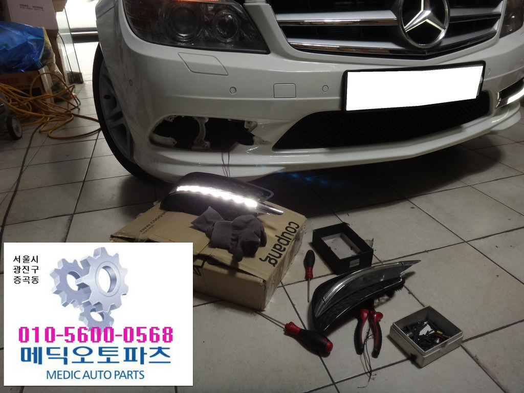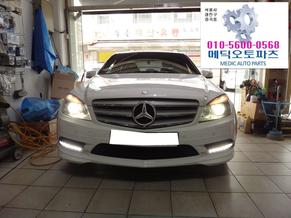 C220 2009년 W204 전기 모델 사제 LED 데이라이트 불량 교체 벤츠 수입차 메딕 오토 파츠 부품 용품 oem 드레스업 라이트 c200 c250 c300 c350 c63 amg 화이트