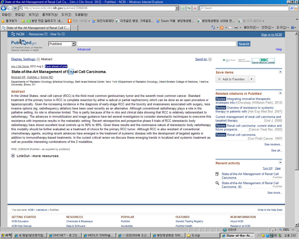 우리병원 PubMed(http://www.ncbi.nlm.nih.gov/pubmed?holding=ikrdaemplib)에서 아래와 같이 검색되었는데....