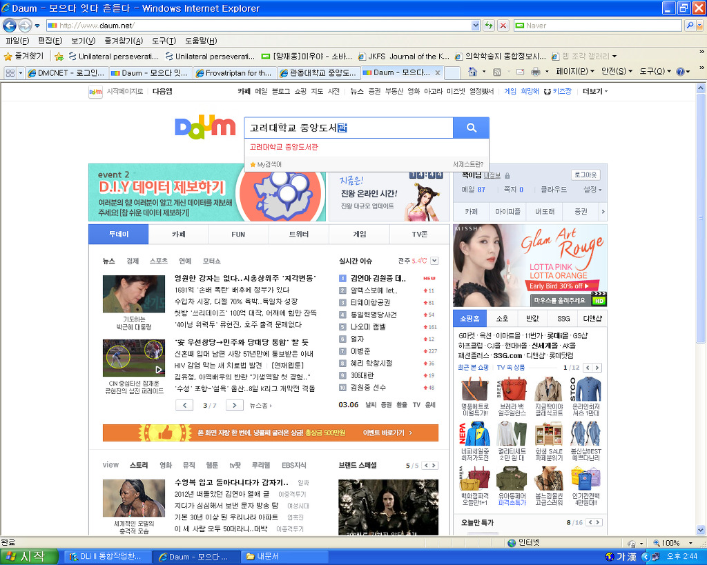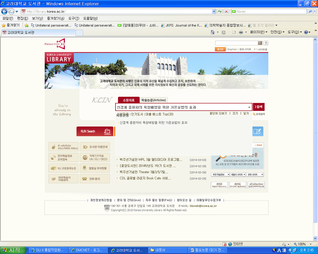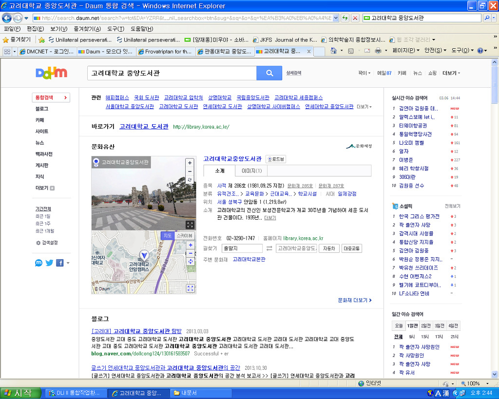 고려대학교 중앙도서관 홈페이지를 찾았습니다.