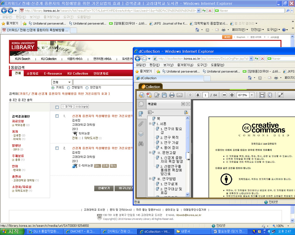 신경계 중환자의 욕창예방을 위한 가온요법의 효과 라고 기재 후 검색을 클릭합니다.