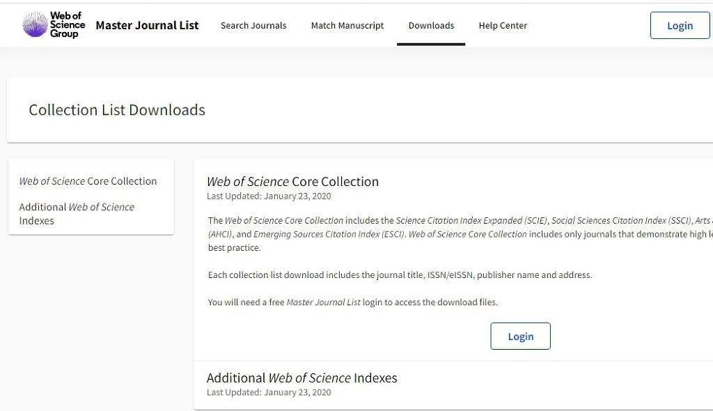 데이터베이스별 등재 중인 저널 리스트는 'Master Journal List' 에서 회원가입 후 무료로 다운로드하실 수 있습니다.