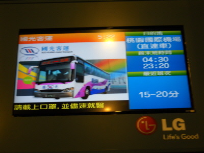 타이페이 역과 붙어 있는 국광 버스 터미널에서 타오위안 공항까지 가는 버스.