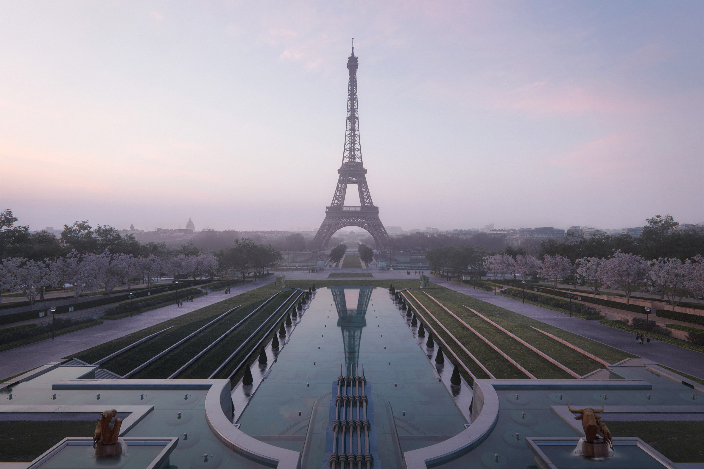British landscape architecture studio Gustafson Porter + Bowman are redesigning the approaches to the Eiffel Tower in Paris ahead of the Paris 2024 Olympic Games.
