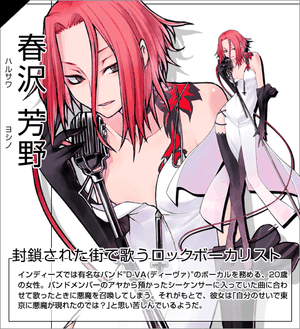 D-Va 록 밴드의 보컬니스트입니다. 현재는 그룹이 해산되었지만 계쏙해서 그녀는 노래를 부르는듯 하고, 꽤 복잡한 과거를 지닌듯 합니다. 타인과 별로 관계를 맺는것을 좋아하지 않는데 주인공으로 인해 뭔가 특별한 마음이 싹트게 됩니다. 스토리상 열쇠를 가지고 있는 인물중 하나입니다. 참고로 게임상에서는 줄여서 '하루'라고 부릅니다.
