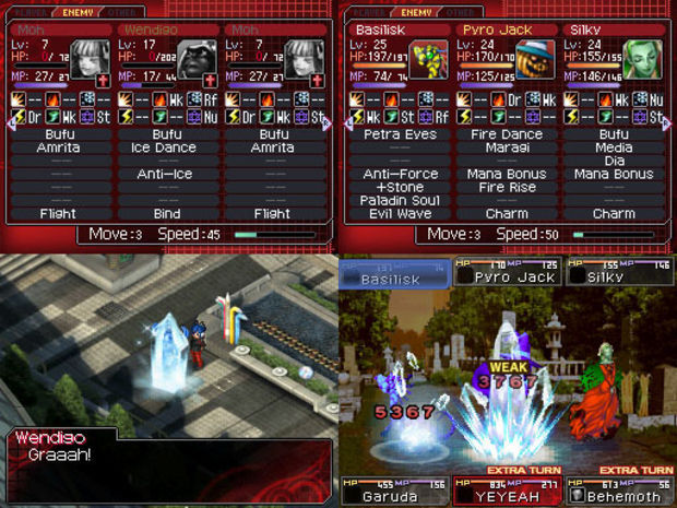 악마들마다 약점이란것이 존재하는데, 이것은 게임에서 가장 중요한 부분이라 할수 있습니다. 적이 가지고 있는 약점을 그대로 공격하면은 우리측에 Extra turn이 오게 됨과 함께 각 속성에 따른 패널티(예를 들어 얼음은 냉동)를 줄수 있는 확률이 높아집니다.