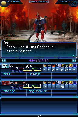 다시 케르베로스에게 말을 걸면, 오니를 패라고 하긴 커녕 순순히 인정하며 오로트로스에게 사과를 전해주라고 합니다.