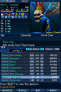 공식적으로 번역이 되지 않은 게임이라 이름은 나무위키, 조합식은 https://aqiu384.github.io/megaten-fusion-tool/smtsj/demons 을 참고했습니다.