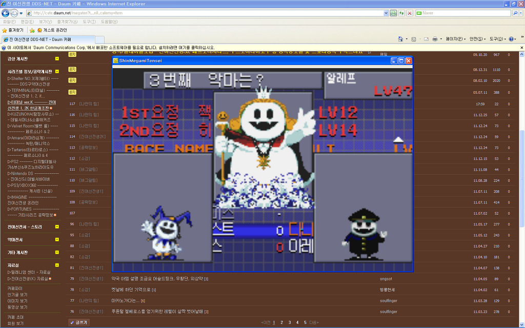 헌데 저 위 스샷을 보면 아시겠지만, 저 3마리 말고도 사악 프로스트가 있습니다. 그 사악 프로스트가 있는 줄 알고 저 3녀석을 3신합체로 만드는걸로 확신하고 거진 1시간을 투자해서 히호군과 킹프로스트를 만들고 저 3마리를 모아서 3신합체...근데..지레짐작이 틀렸습니다. 전혀 다른 녀석이 등장하더군요. 제가 못찻은건지 아님 아예 없는 건지 모르겠지만, 일단 저 3마리론 사악 프로스트가 안나온다는 건만 확인하였네요.