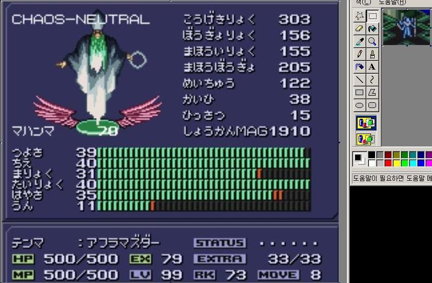 그리고 체력하고 마력 위에는 텐마=천마 아흐라 마즈다 라고 써있네요.