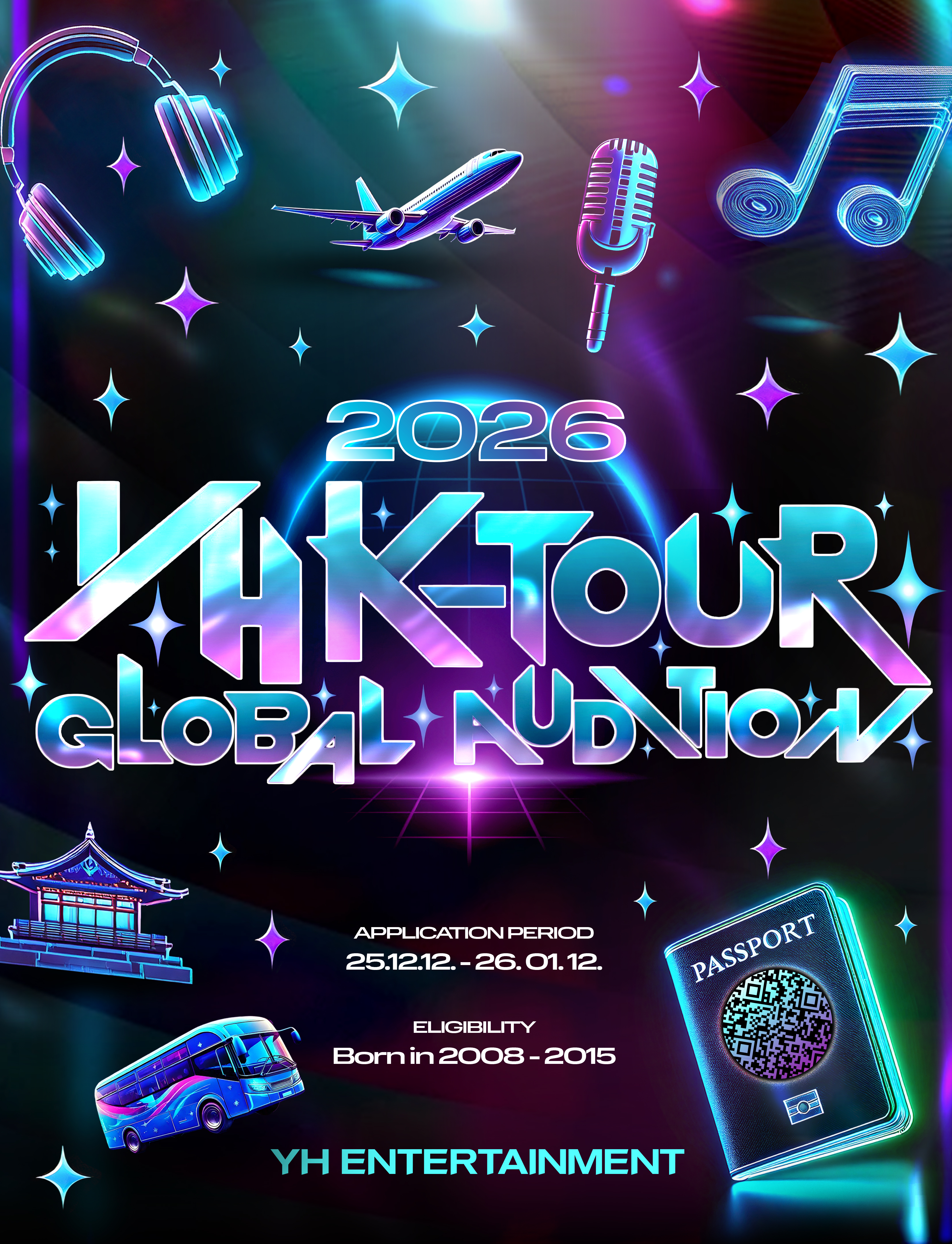 배우 이도현, 가수 최예나, TEMPEST가 소속된 YH엔터테인먼트에서 (구 위에화엔터테인먼트) 2026 YH K-TOUR 글로벌 오디션 지원자를 모집합니다!