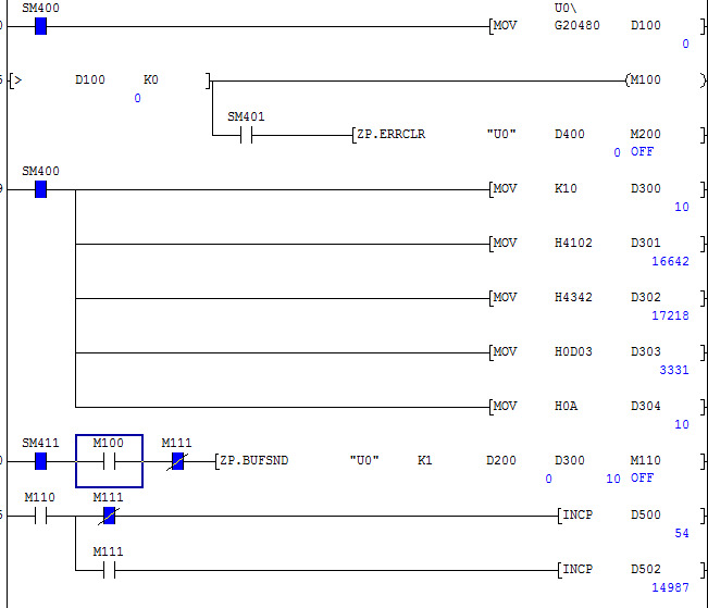 PC와 통신 할경우는 I/P와 오픈 프로토콜만 세팅하시고 PC에서 오픈하시고 RD/WR 모두 PC에서 실행하시면 PLC 프로그램이 필요 없습니다.