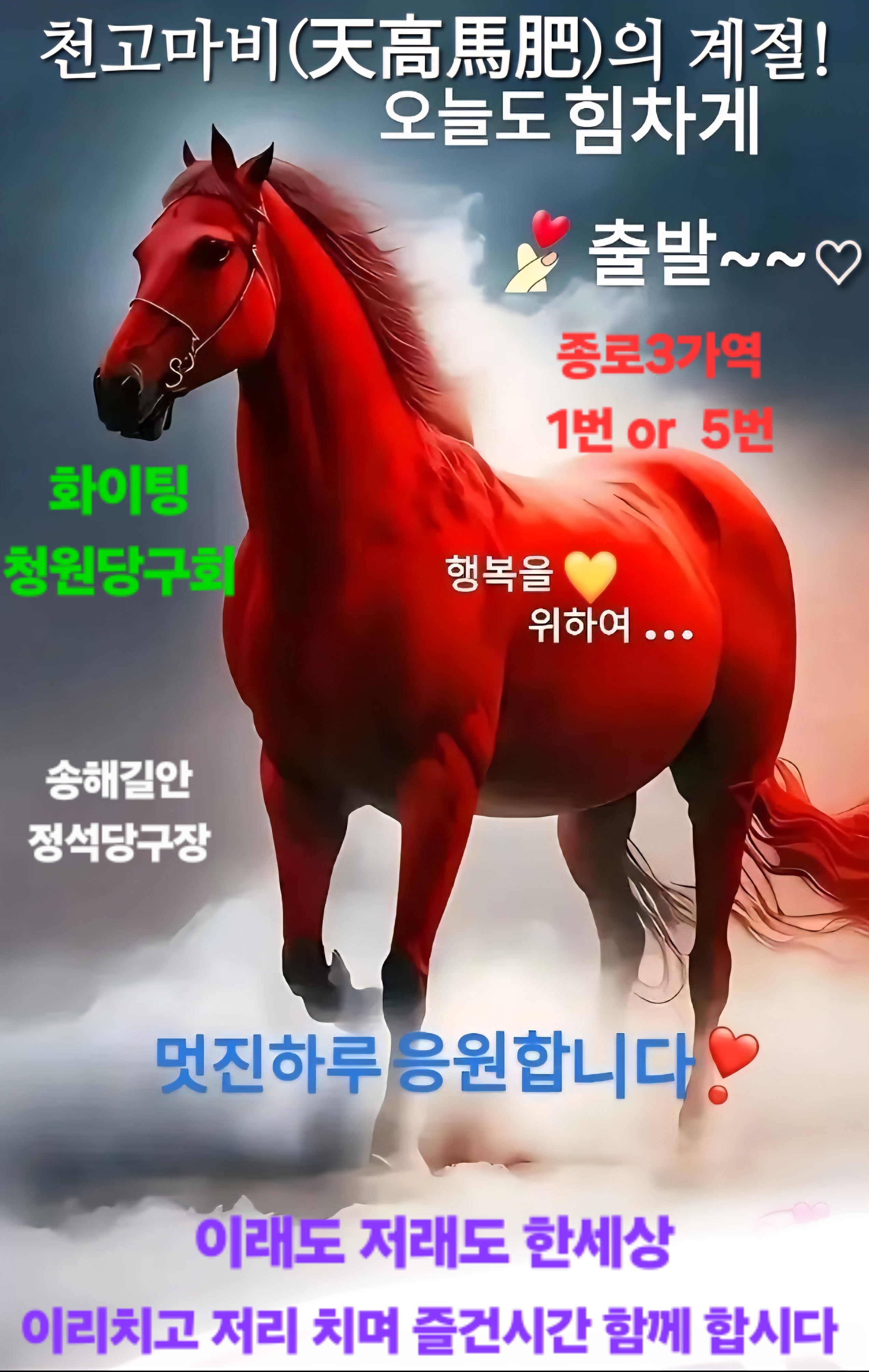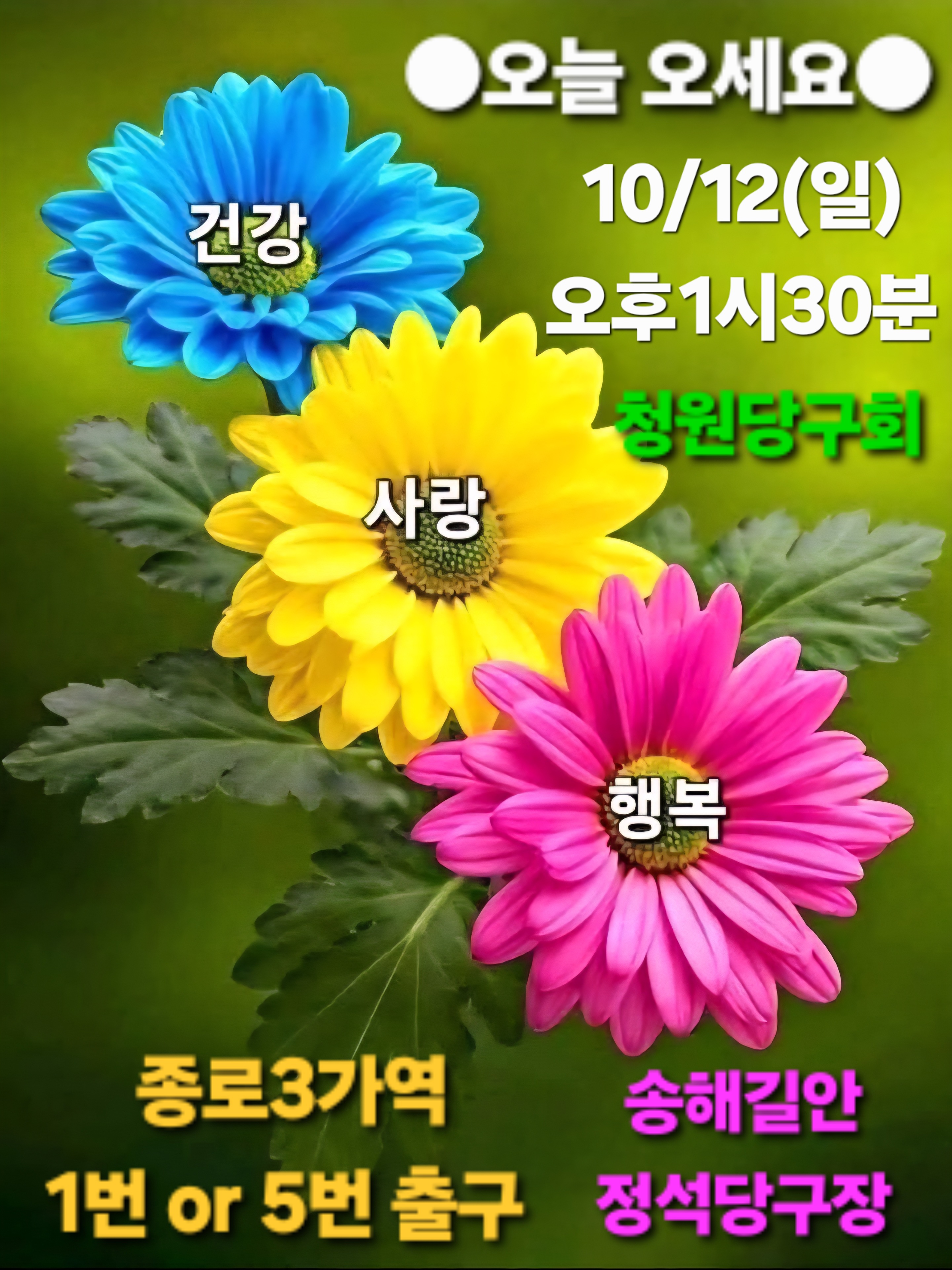 제50차 청원당구회 종로3가역 오세요! 작성자이상주|작성시간25.10.12|조회수150 목록 댓글 2 글자크기 작게가 글자크기 크게가 삼위일체의 예술품!이리치고 저리치며! 즐건시간 모두함께종로3가역으로 오세요!오늘 💕 1번 5번 출구 송해길안정석당구장 1시반까지 청원 중고 총동문회청원당구 회원 일동ㅋㅋㅋㅋ 다음검색 현재 게시글 추가 기능 열기 북마크 신고 센터로 신고 댓글 댓글 2 댓글쓰기 답글쓰기 댓글 리스트 작성자이상주 작성자 본인 여부 작성자 | 작성시간 25.10.13 비가 오나눈이 오나바람이 부나언제든지 즐길 수 있는 당구!배우기도 쉽고 장소도 많으니이왕이면일칠당구회 or 청원당구회일정 알아 보시고 참여하면좋을 것 같습니다~^L^ 작성자이상주 작성자 본인 여부 작성자 | 작성시간 25.10.27 제10회 민테이블배 3쿠션 최강전이번에도 좋은 결과가 있었으면 하는바램으로 열심히 준비하고 있는데잘 되도록 응원 부탁 드리겠습니다~^L^ 댓글 전체보기