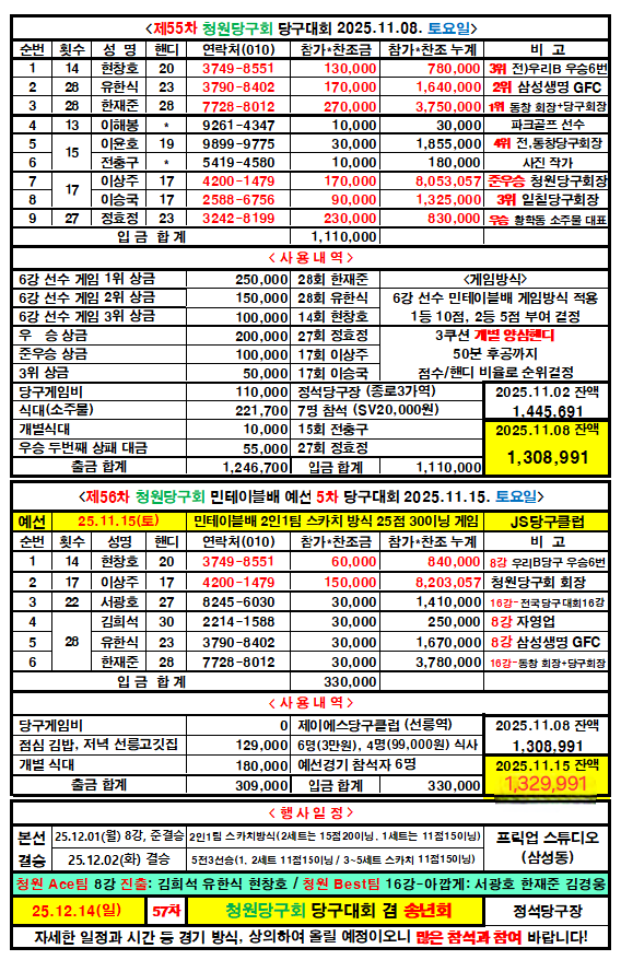 작성자이상주 작성자 본인 여부 작성자 작성시간 25.12.08 제10회 민테이블배 전국 최강 3쿠션 대회