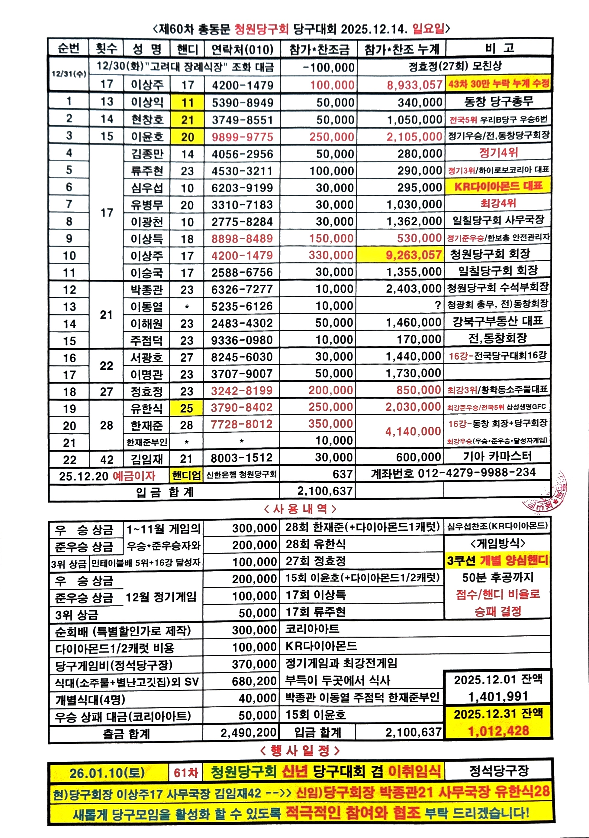 작성자이상주 작성자 본인 여부 작성자 작성시간 26.02.20 청원당구회
