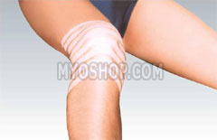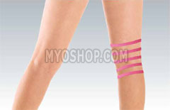 계단을 올라갈때나 내려올 때 모두 무릎의 통증시 테이핑으로 무릎에 부종이 있는 경우도 사진과 같이 테이핑을 하게되면 경감이 된다. 이 때 탄력테이핑보다는 비탄력 테이핑이 효과가 더 좋다. 부종이 없어지고나면 신전과 굴곡을 다시 평가하여 Pattern에 따라 테이핑한다.