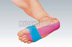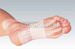 | 기본 아치(중족관절) 테이핑 ☞ 발바닥 굳은 살 제거시 아주 효과적이며 특히 많이 걷는 사람의 무릎 통증에 효과적이다. |