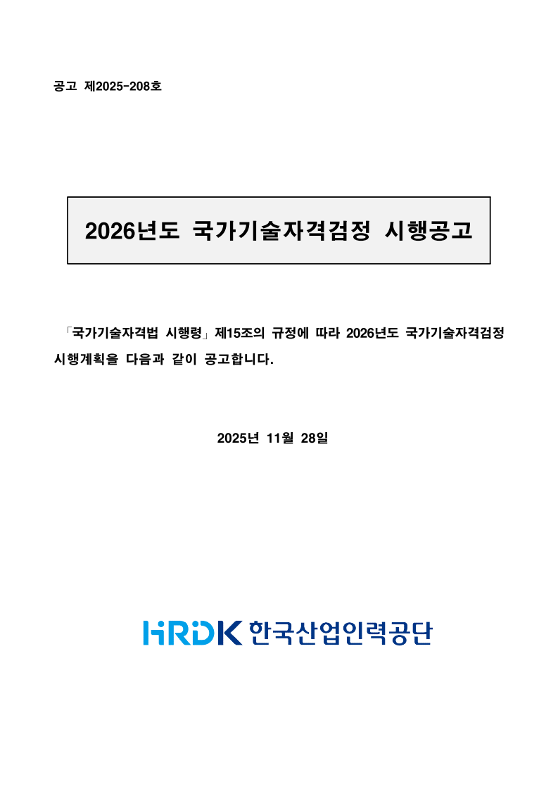 - pdf 파일 [ 2025-11-01 ]2026년도 국가기술자격 검정 시행계획(대외 공고).pdf