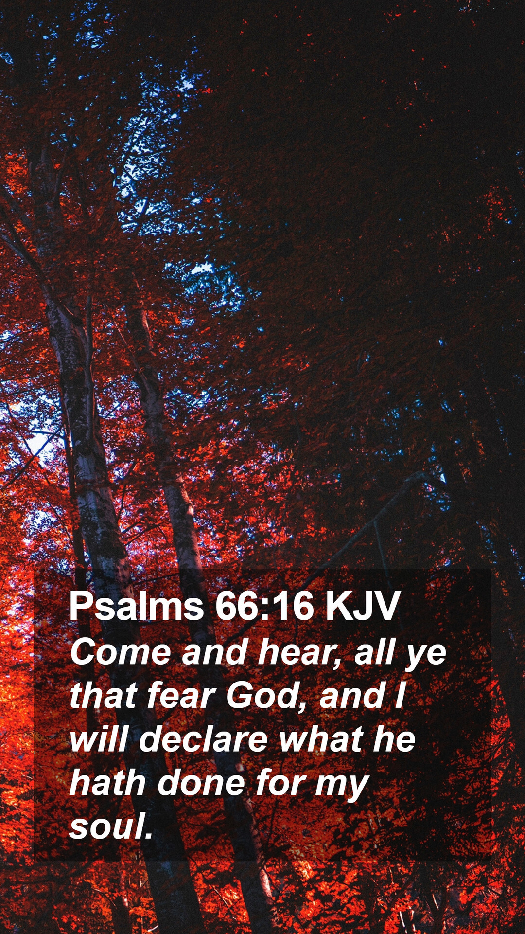 13 내가 번제물을 가지고 주의 집에 들어가서 나의 서원을 주께 갚으리니, 14 이는 내 입술이 낸 것이요 내 환난 때에 내 입이 말한 것이니이다. 15 내가 숫양의 향기와 함께 살진 것으로 주께 번제를 드리며 수소와 염소를 드리리이다(셀라). 16 하나님을 두려워하는 너희들아 다 와서 들으라. 하나님이 나의 영혼을 위하여 행하신 일을 내가 선포하리로다.