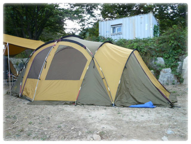 사진을 보시고 아웃백 텐트와 비교하시면 방수포가 상당이 크다는 걸 알 수 있으실 겁니다.