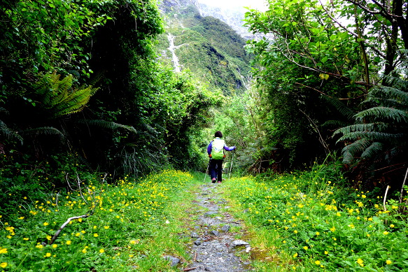 키 작은 관목들이 줄지어 섰고 야생화가 앞다투며 트레커들을 환영한다.