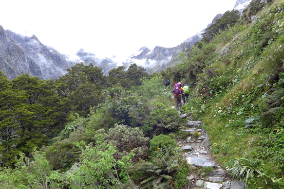 드디어 밀포드 트랙의 클라이막스 구간인 신비의 요정길에 발길을 들인다(07:40).