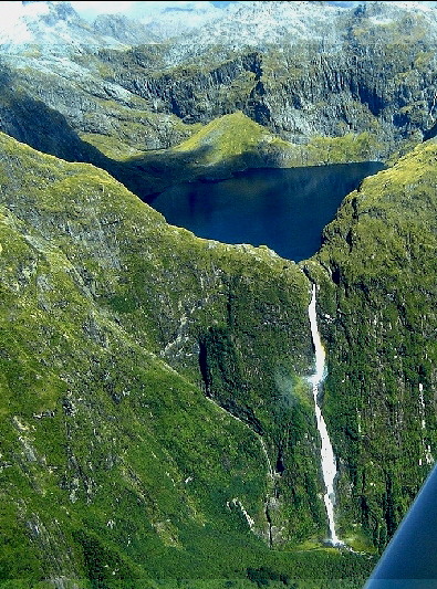 항공기를 타고 본 퀼 호수와 서덜랜드 폭포(퍼온 사진).