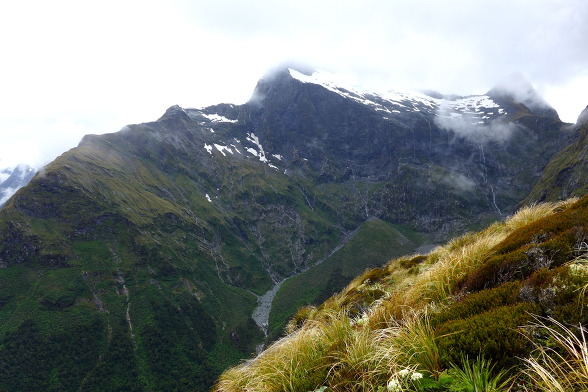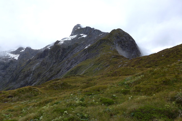 봉우리 뒷쪽으로 서덜랜드 폭포의 원류인 퀼 호수(Lake Quill)가 있다고 하는데 항공기를 타야