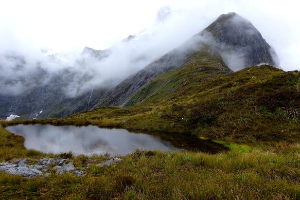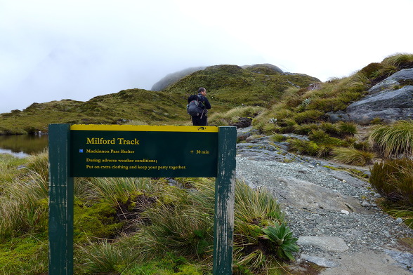 밀포드 트랙의 최고점 맥퀸논 패스(1154m)에 섰다(12:09).