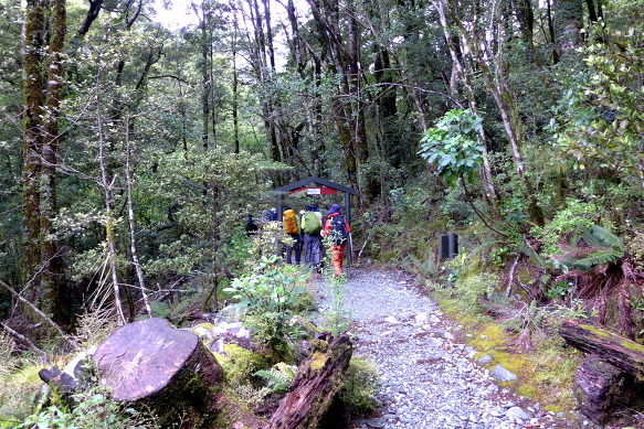 프리 트레킹을 하는 트레커들이 이틀 째 숙박하는 민타로 헛(Mintaro Hut) 입구에 이르렀다(09:13).