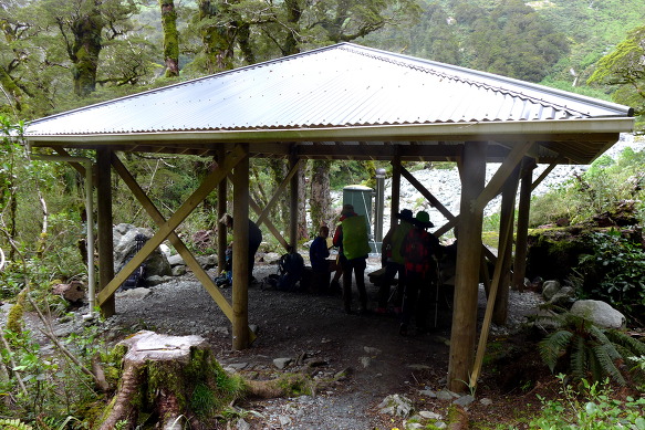 거기를 넘으면 맥퀸논 패스 쉘터가 있는데 트레커들이 식사하며 휴식하는 장소로 이용된다.